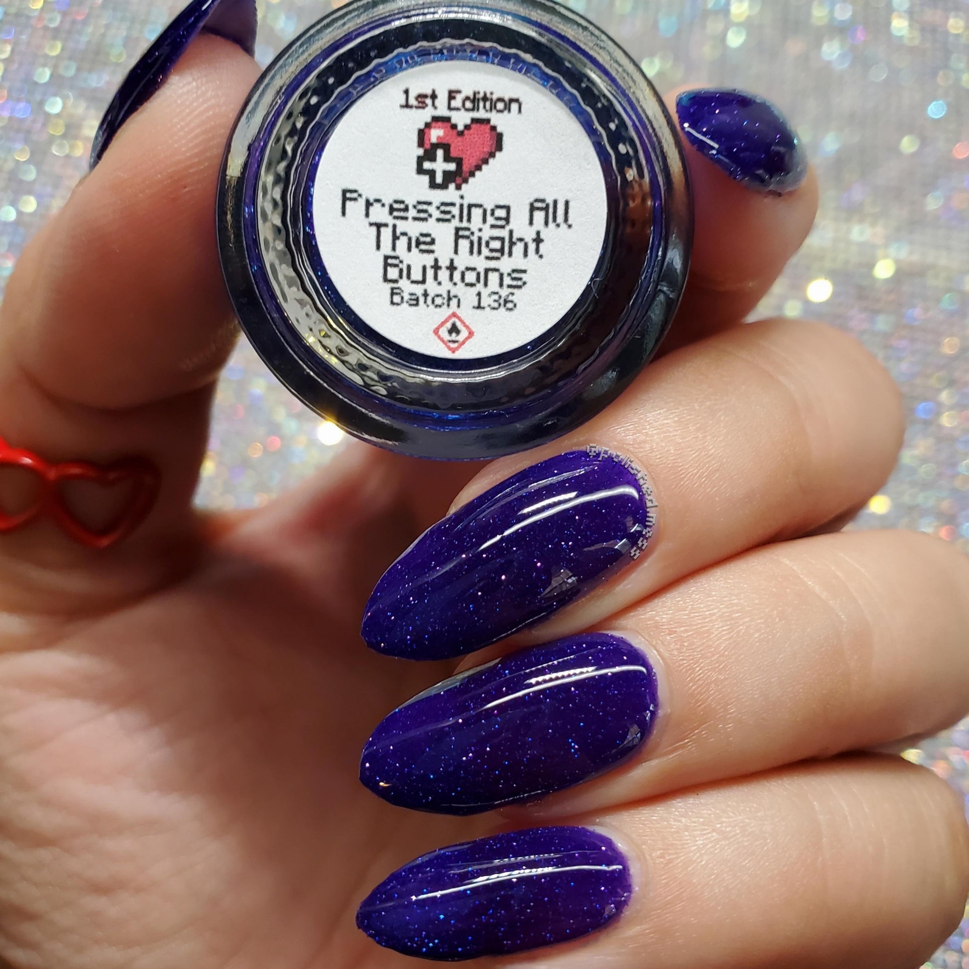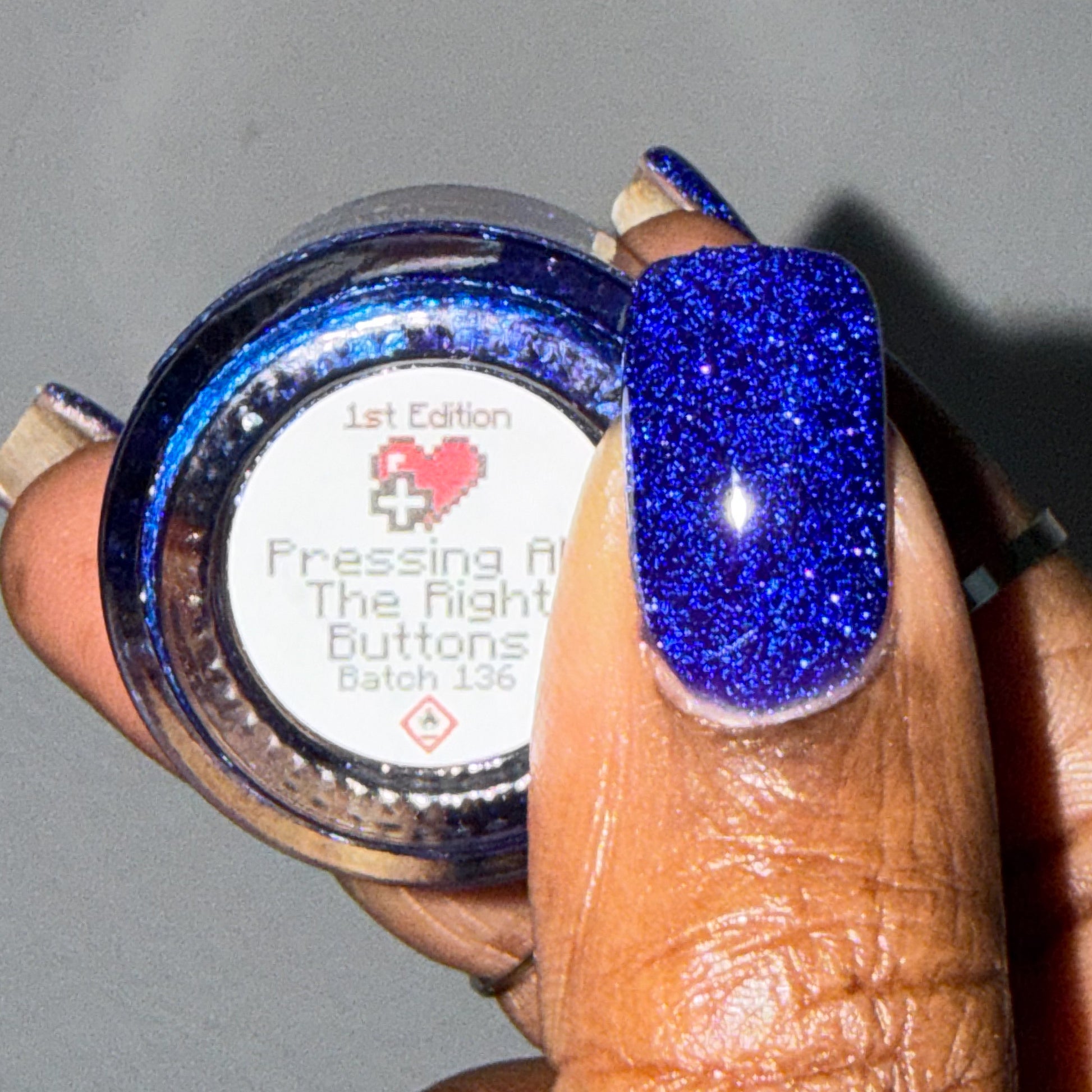 Pressing All the Right Buttons is that deep, seductive indigo that knows exactly how to get your pulse racing. It’s the shade that feels like a slow grin flashed across a dimly lit arcade machine; playful, suggestive, and just dangerous enough to make you lean in. One swipe, and it’s game on… because this polish doesn’t just glow. It teases, tempts, and definitely knows how to hit all the right buttons.