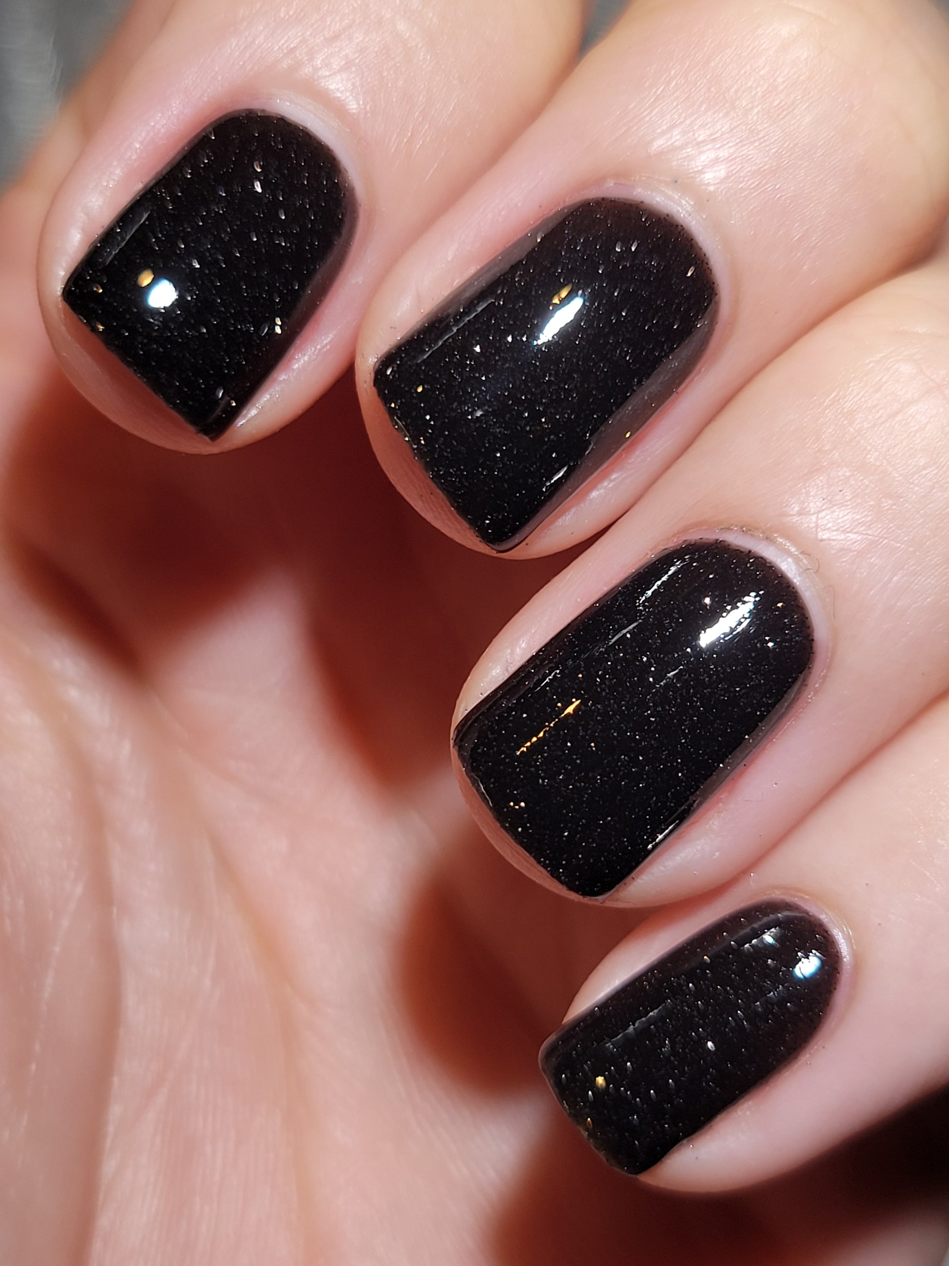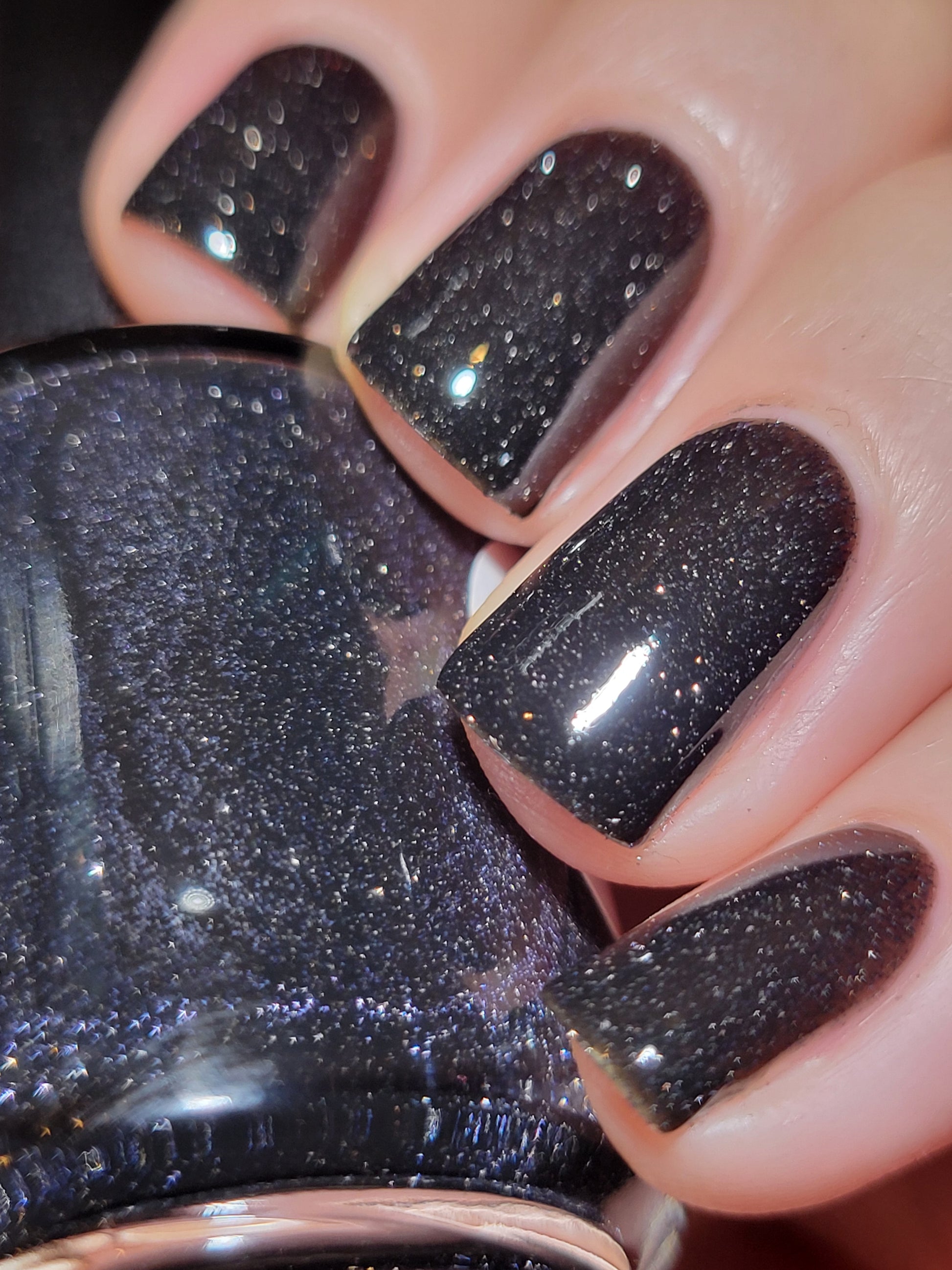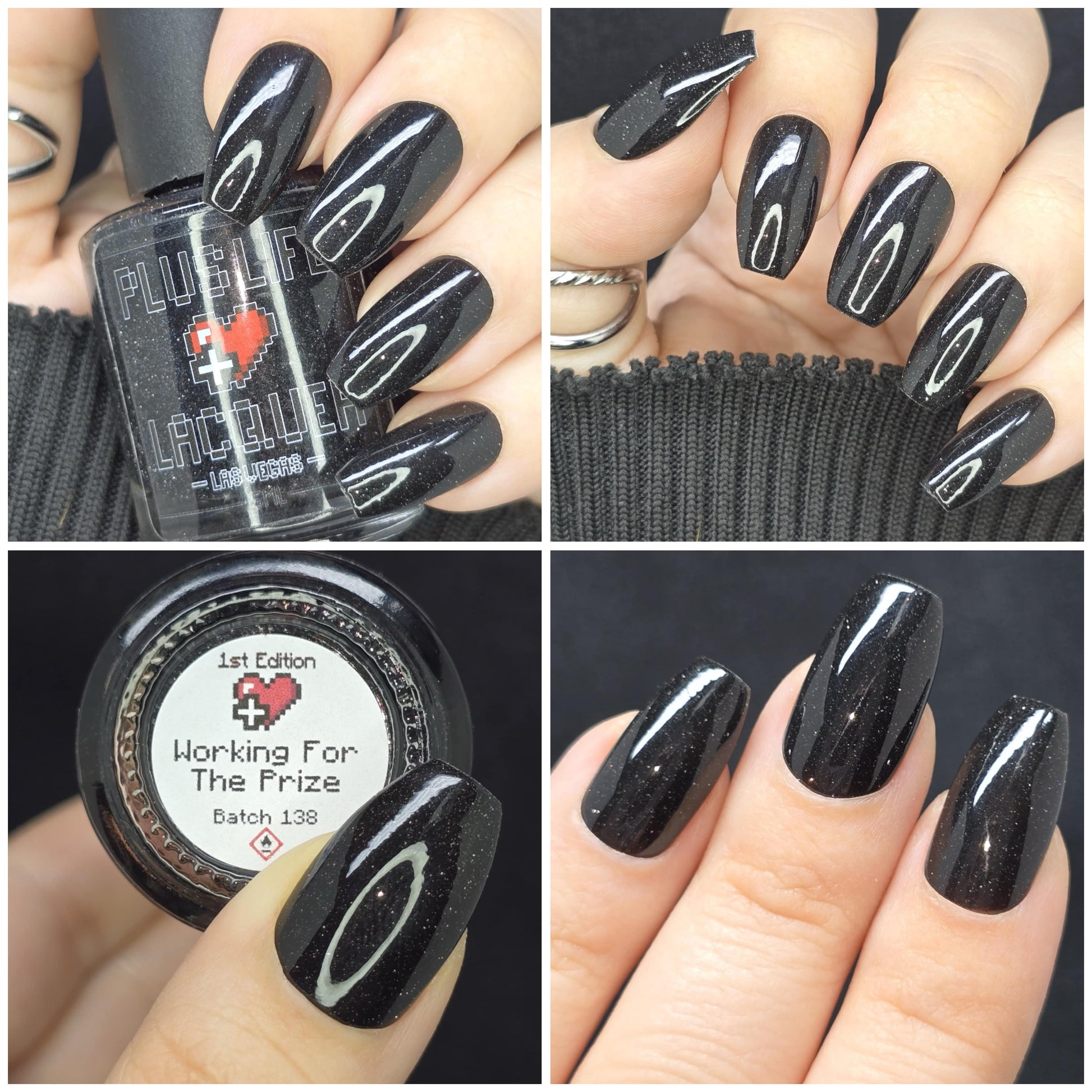 Working For The Prize is a black jelly with black reflective glitter. Because the reflective in this polish is black, the reflective quality may be a little harder to see!