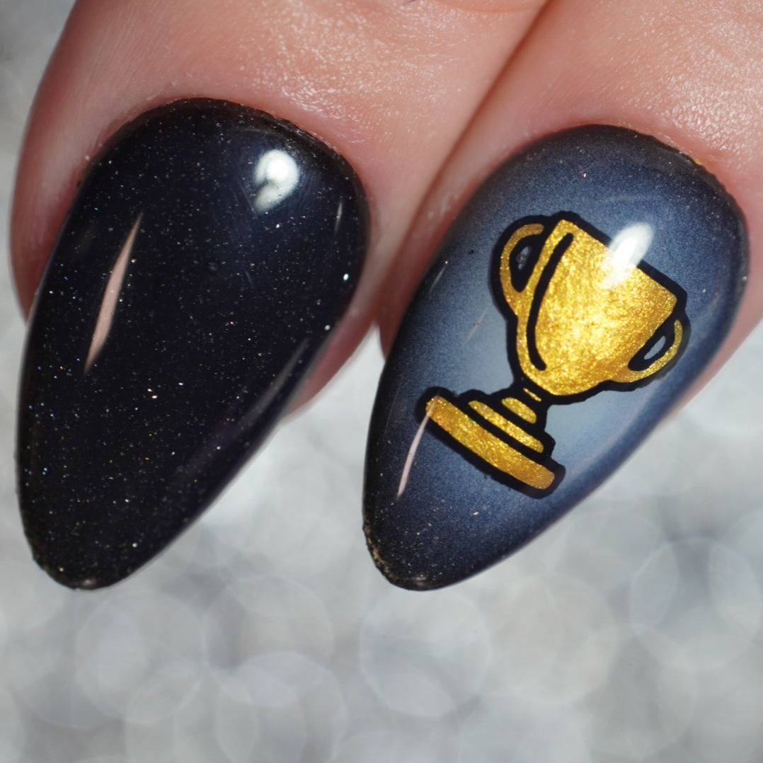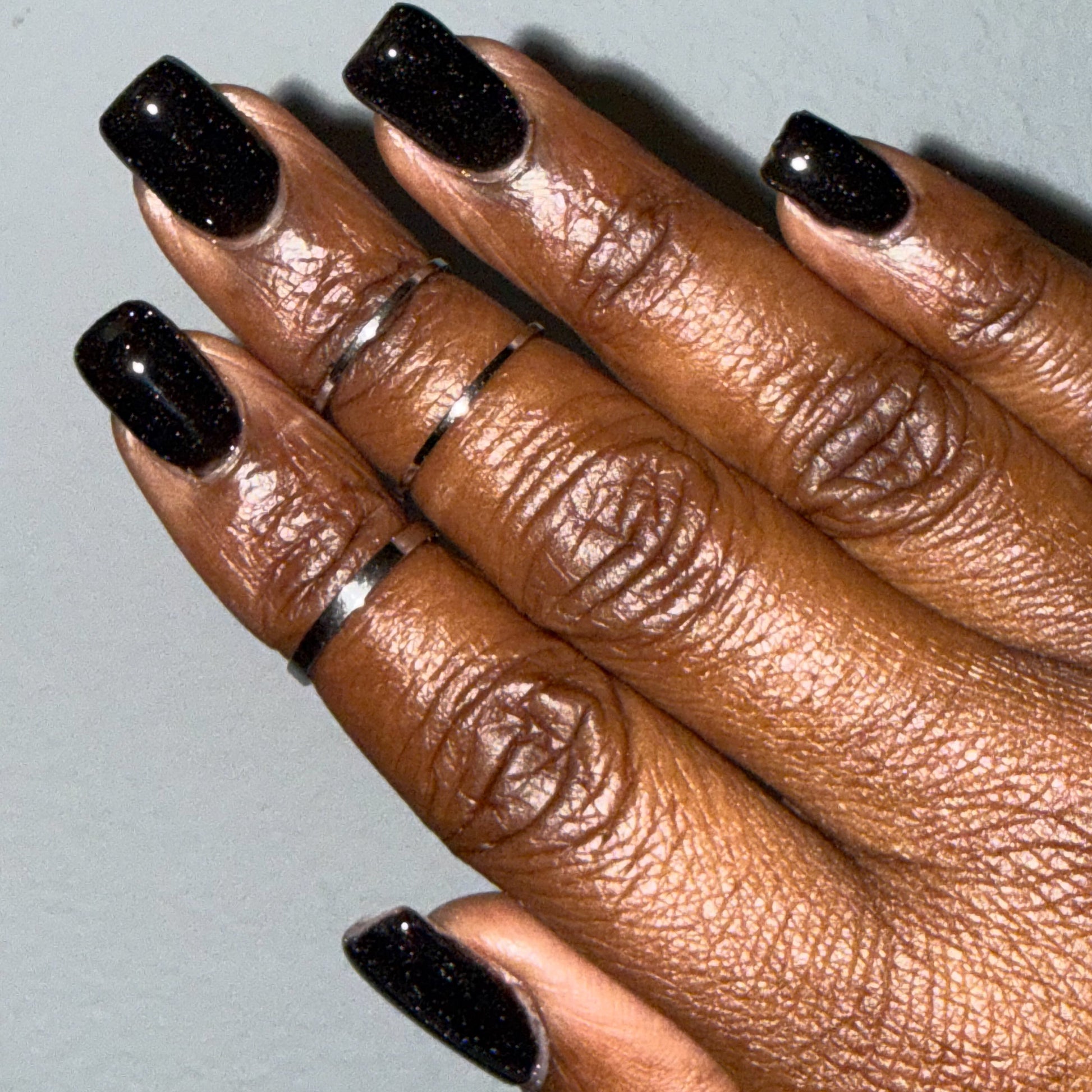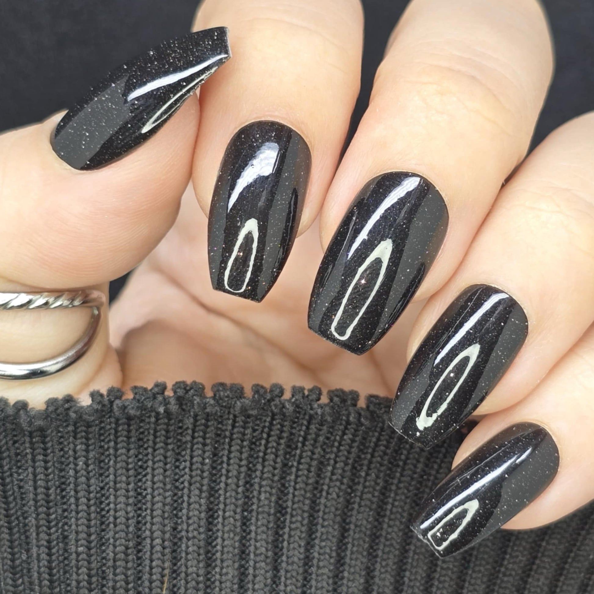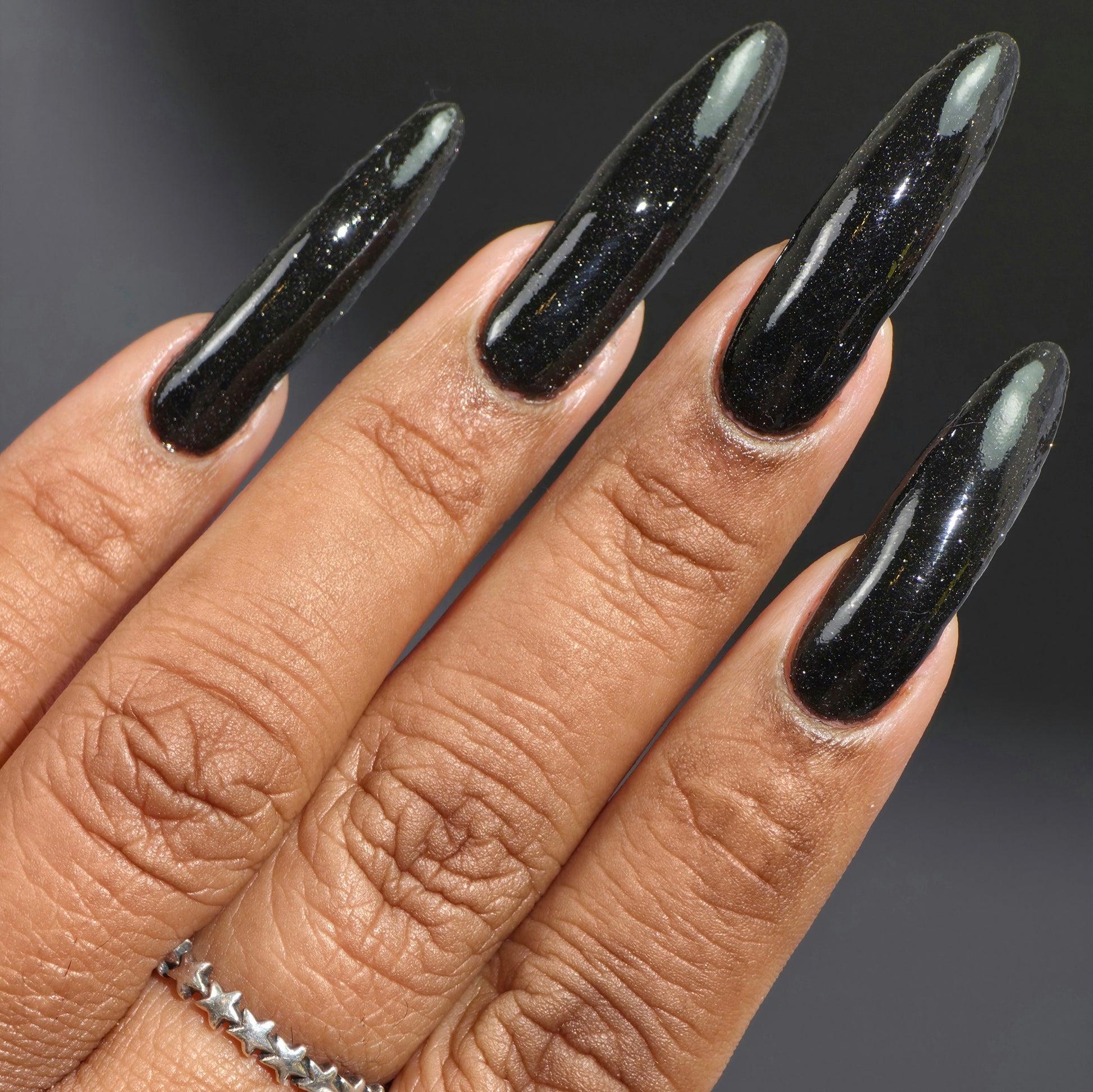 Working For The Prize is a black jelly with black reflective glitter. Because the reflective in this polish is black, the reflective quality may be a little harder to see!